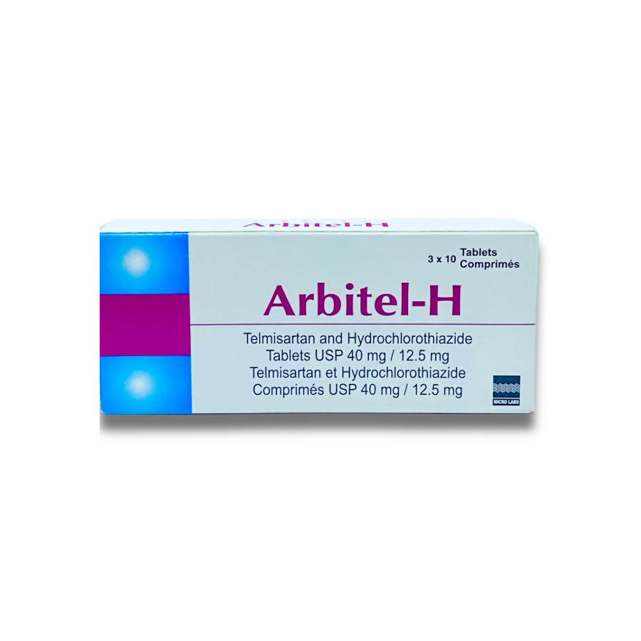 Arbitel 40H Tablets contain a fixed-dose combination of telmisartan (40mg) and hydrochlorothiazide (12.5mg). This medicine is prescribed for the treatment of high blood pressure when a single drug is not sufficient to achieve control.