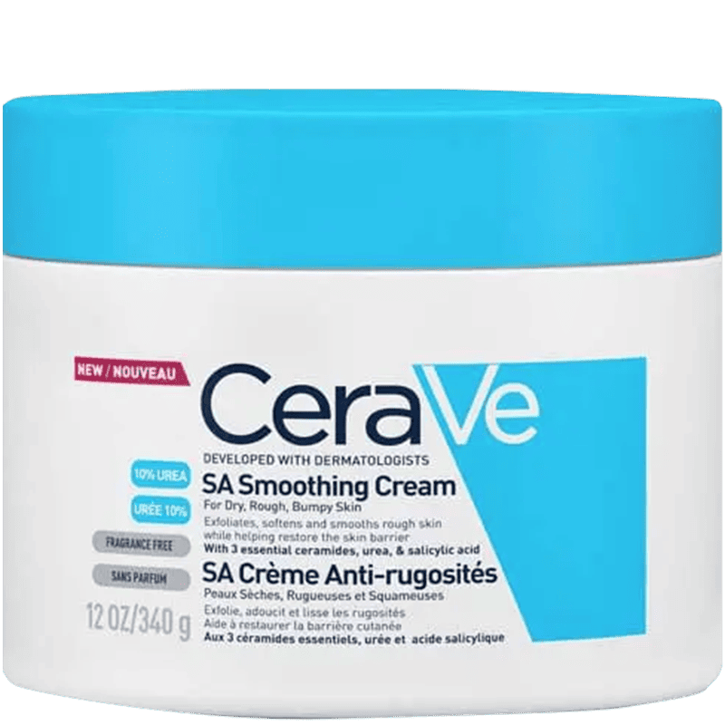 Cerave SA Smoothing Cream (340g) is a fast-absorbing body cream that exfoliates and hydrates the skin, leaving it feeling soft and smooth. Formulated with Salicylic Acid, Ceramides, and Hyaluronic Acid, this non-greasy, fragrance-free formula helps to exfoliate rough, bumpy skin and retain moisture without irritation. It's designed to work on the body, providing relief for dry patches, calluses, and areas of rough skin, while restoring the skin’s natural protective barrier.