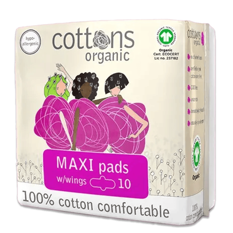Cottons Organic Maxi Pads with Wings 10’s - Soft, Natural & Secure Period Protection