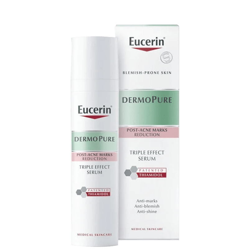 Eucerin Impure Skin Dermo Pure Protecting Fluid SPF30 50ml is a specialized sunscreen formulated for oily and acne-prone skin. This non-comedogenic fluid provides broad-spectrum protection against harmful UVA and UVB rays while helping to control excess oil and shine. Enriched with Salicylic Acid and Lactic Acid, it targets the root causes of acne by preventing clogged pores, reducing inflammation, and helping to prevent future breakouts. This lightweight fluid also features a mattifying effect, leaving your skin with a smooth, matte finish that lasts throughout the day. Perfect for daily use, it helps protect the skin from sun damage while promoting clearer, healthier-looking skin. Its oil-free formula ensures it won’t clog pores, making it an excellent choice for individuals with acne-prone skin.