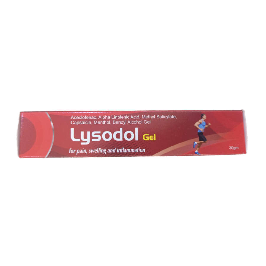 Lysodol Gel 30G is a topical analgesic gel formulated to provide fast relief from muscle and joint pain, including arthritis, back pain, and sprains. The gel contains Diclofenac Diethylammonium, a nonsteroidal anti-inflammatory drug (NSAID) that helps reduce inflammation, swelling, and pain when applied directly to the affected area.