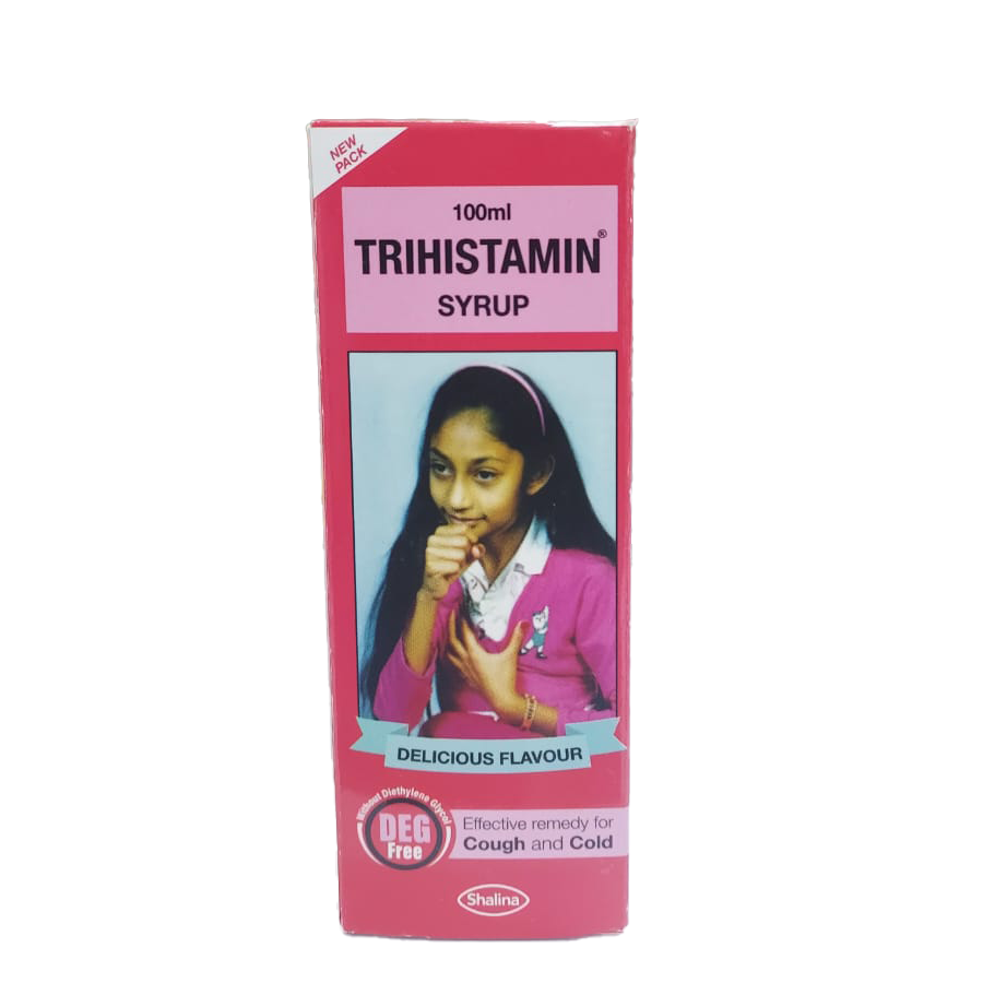 Trihistamine Syrup 100ml is a trusted medication designed to provide relief from allergies, hay fever, and respiratory congestion. This syrup contains Diphenhydramine, an antihistamine that helps to block the effects of histamines in the body, which are responsible for symptoms such as sneezing, runny nose, itchy eyes, and respiratory congestion. Additionally, Trihistamine works as a cough suppressant by soothing the throat and reducing the urge to cough.